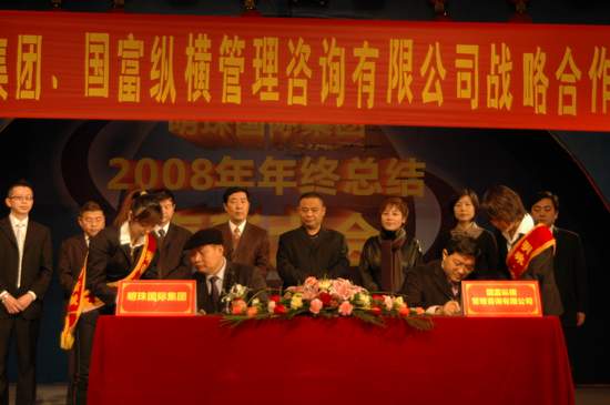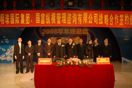1月23日,國富縱橫總裁趙龍博士、策劃總監周楊博士在明珠集團總部與明珠集團董事長李繼和先生等高層領導一起出席了盛大而隆重的明珠集團、國富縱橫管理咨詢有限公司戰略合作簽約儀式。國富縱橫和明珠集團都對此次合作充滿了信心,愿意為西部家居事業的發展做出很大的努力。