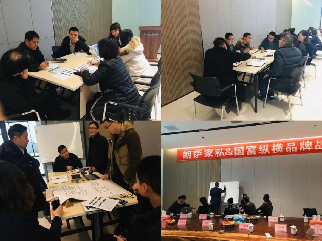 朗薩家私品牌戰略研討以工作坊的方式針對朗薩家私品牌戰略核心要義、品牌定位、廣告語等議題進行深度討論、確定,參與討論的人員涵蓋朗薩家私的各個部門,包括生產部、設計部、產品部等以及國富縱橫項目組,目的是讓朗薩家私核心層,以主人翁的心態全場參與、全情投入,為朗薩家私的品牌戰略集思廣益,結合企業實際情況,做出最適合企業發展的品牌戰略。